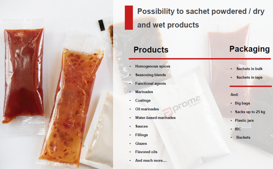 De mogelijkheid om zulke kleine porties kruiden en sauzen te verpakken kan worden gebruikt voor onder andere diepvriesgroenten, loempias, soepen, friet, vlees en vis, bereide gerechten, groenten en groenteburgers, pasta en rijst, blauwe kaas en barbecuekaas, popcorn en chips, bier en wijn en koffietoppings.