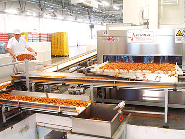 ARIES is een radiofrequentiedroger die zorgt voor een snelle en efficiënte vochtverwijdering en nivellering, waardoor de houdbaarheid toeneemt en de verwerkingskosten dalen. Hij vermindert ook controleproblemen, elimineert oppervlakteverkleuring, verbetert de krokantheid en smaak en vermindert de vorming van acrylamide.